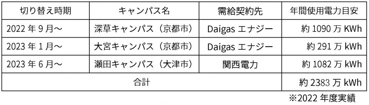 - 100%再生可能エネルギー化は、西日本の大学では初。複数キャンパスを持つ私立大学では日本初
