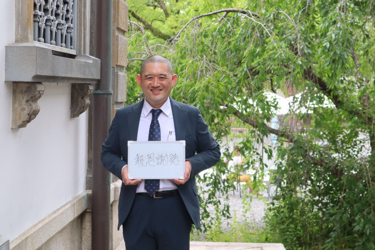 「報恩謝徳(ほうおんしゃとく)です。私が学生の皆さんに伝えたいことは、人と人とのつながりを大事にして欲しいということです。