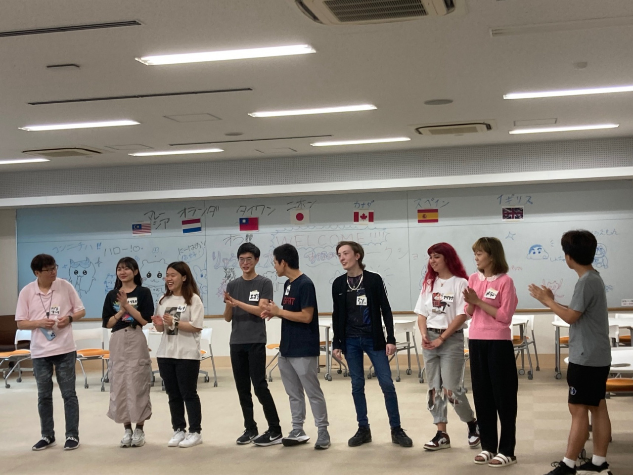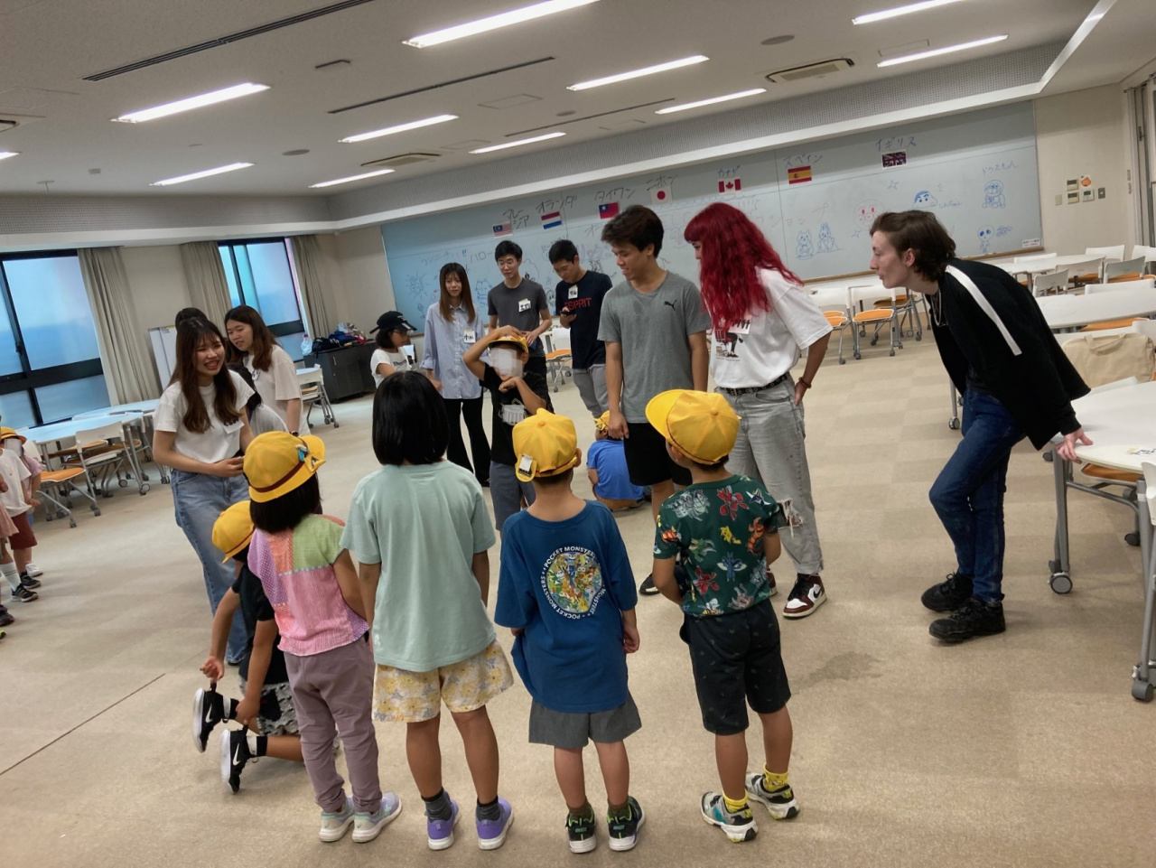 ワークショップでは「ジェスチャーゲーム」、「ミュージックチェアーゲーム(椅子取りゲーム)」等のゲームが行われ、親睦を深めた。留学生も活き活きと児童と交流し、児童に伝わるように日本語で言葉を紡ぎ、ジェスチャーを交えてコミュニケーションを図っていた。児童たちも普段関わる機会が少ない短期留学生にとても興味を持ち、活発に話しており、楽しそうな様子であった。