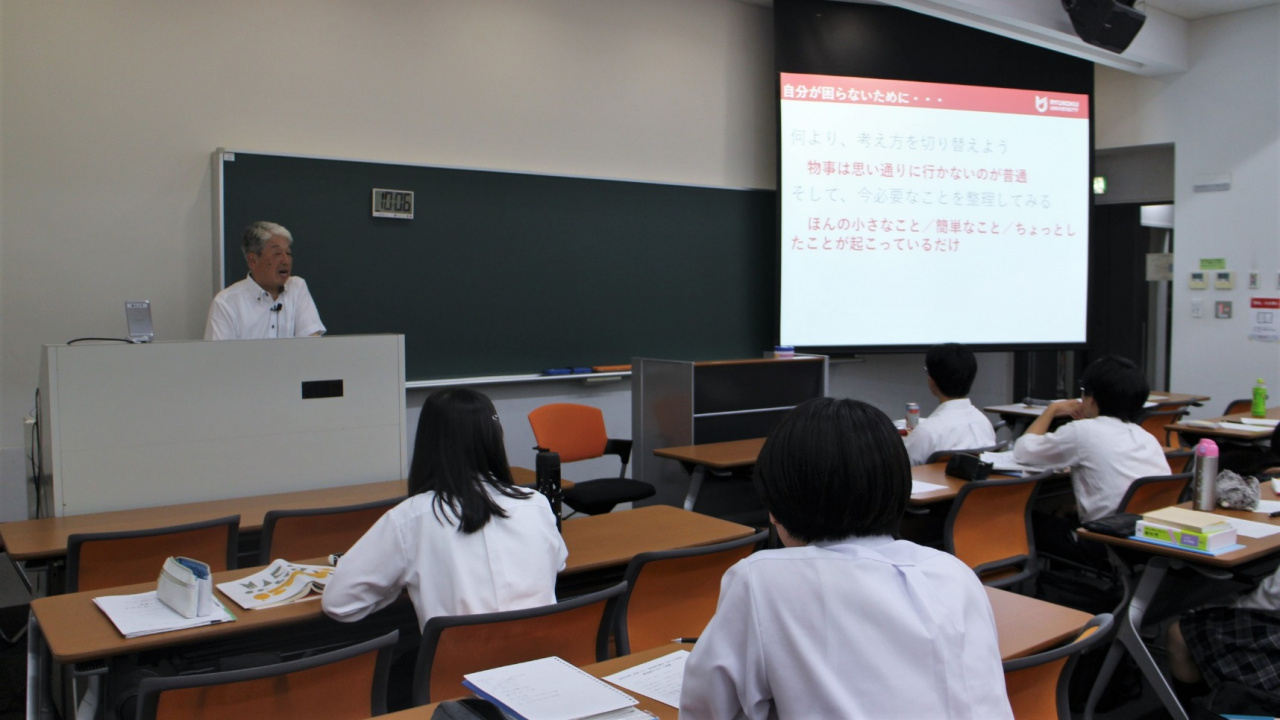 龍谷大学付属平安高等学校特進コースの生徒約30名を対象に、心理学部吉川悟教授による「受験に打ち勝つ心の整え方」をテーマに講演が行われました。これは心理学部と付属平安中学・高等学校との中高大連携事業の一環で実施されているものです。