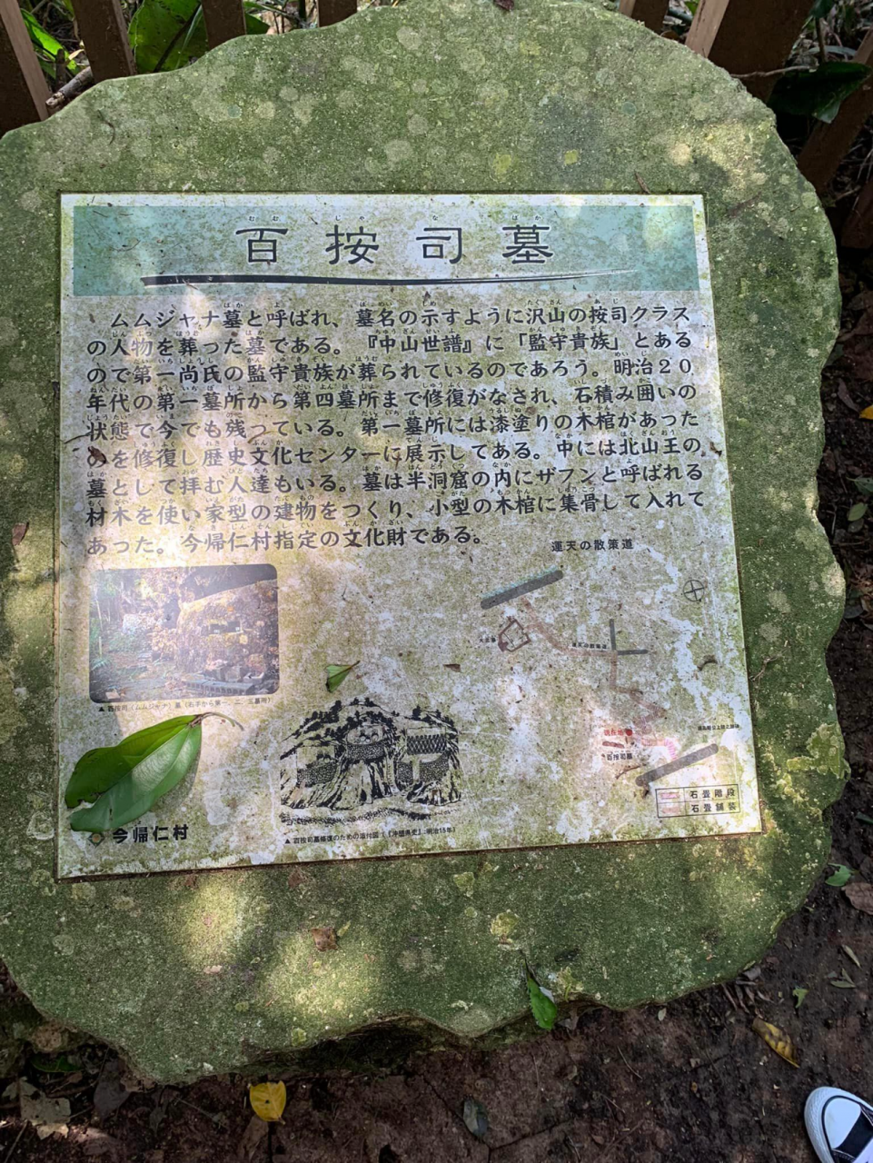 今帰仁村では2018年から続く琉球人遺骨返還訴訟の原告のお一人玉城毅さんに百按司墓までご案内いただき、お墓へお祈りを捧げた後、現地にて訴訟までの経緯や盗骨の歴史的な説明をして頂きました。