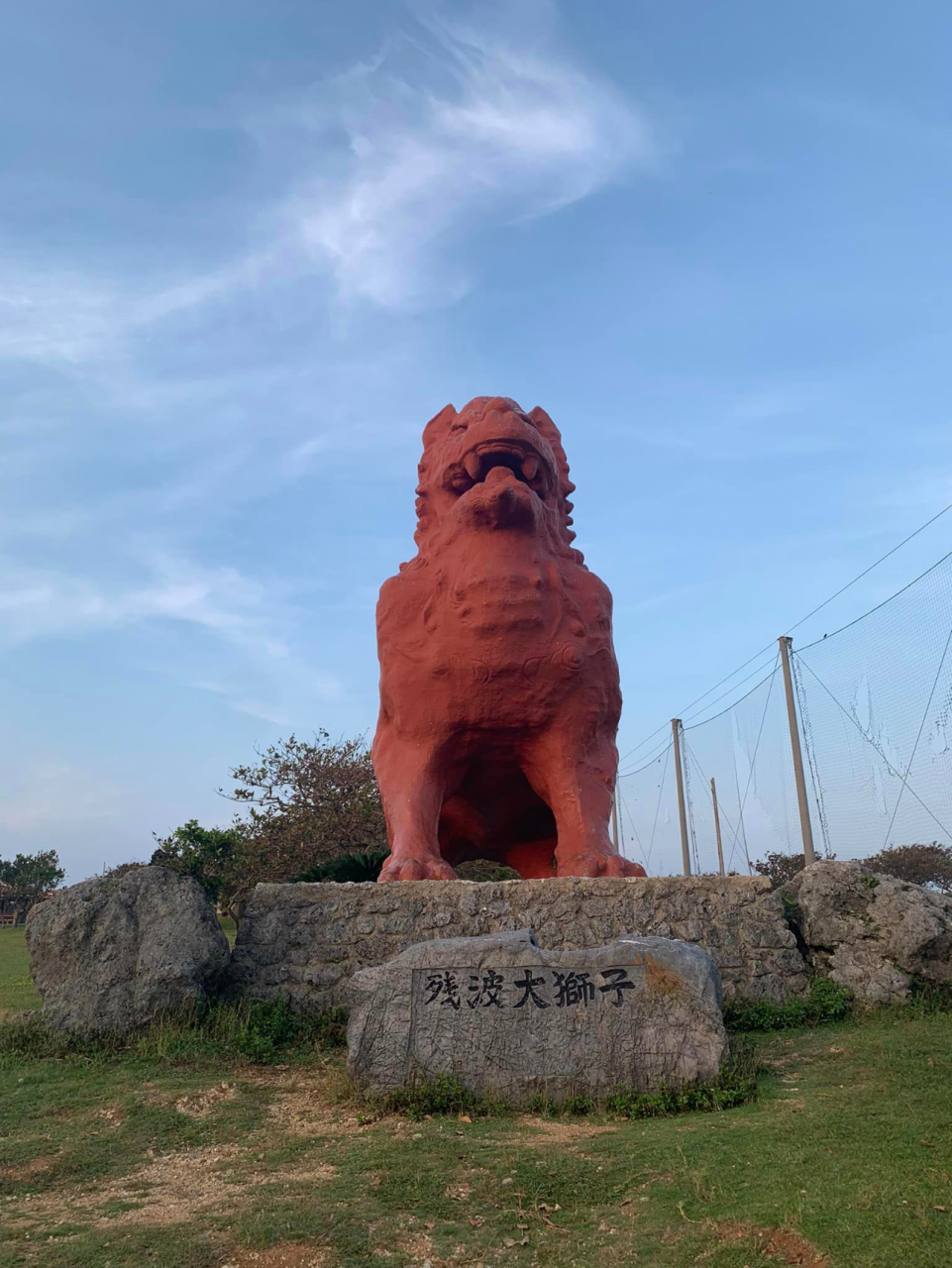 金城さんアトリエでは、金城実さんから次世代へのメッセージについて熱く吠えていただき、残波ビーチにて金城さん製作の残波大獅子の前で記念撮影をして読谷村を後にしました。