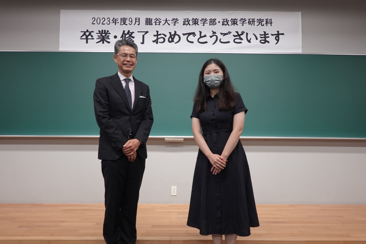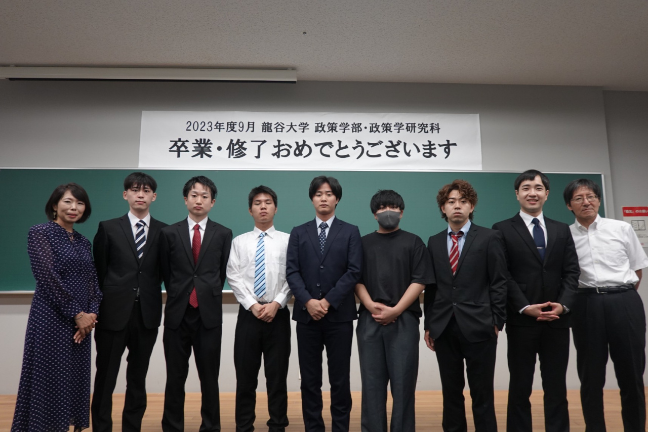 9月15日(金)、深草学舎にて2023年度 9月学位記、卒業証書・学位記、修了証書授与式を実施しました。卒業生は学部生9名、修士課程1名です。