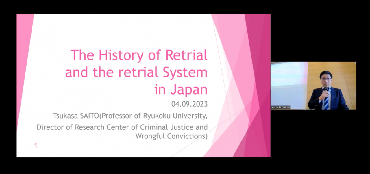 ヘニング・ローゼナウ教授の司会により進行された第2部では、斎藤 司教授(龍谷大学法学部/刑事司法・誤判研究センター長)より日本の再審制度の概要と特徴の説明が行われました。