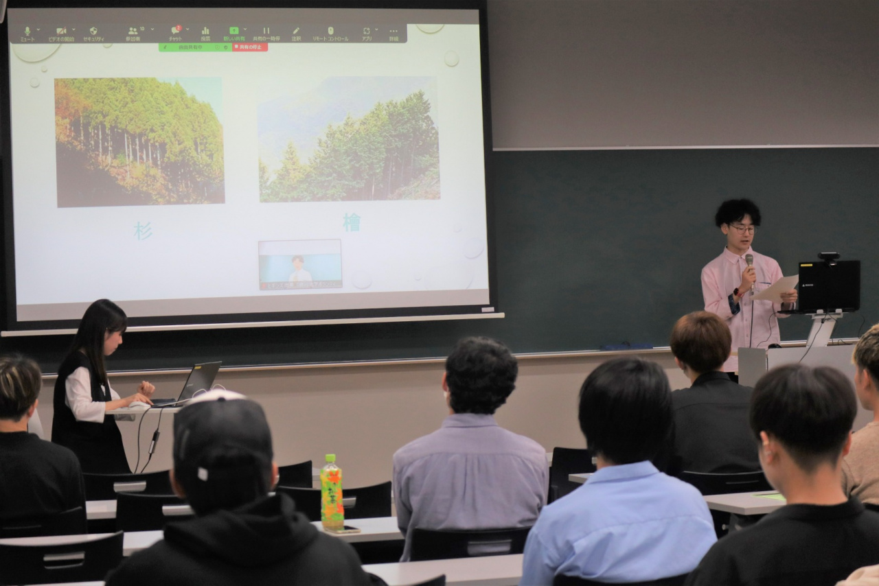 徳島県三好地域(三好市・東みよし町)でのプログラムに参加した学生10名が、2チームに分かれて「三好林業と森林保全」「林業×福祉」というテーマで報告しました。