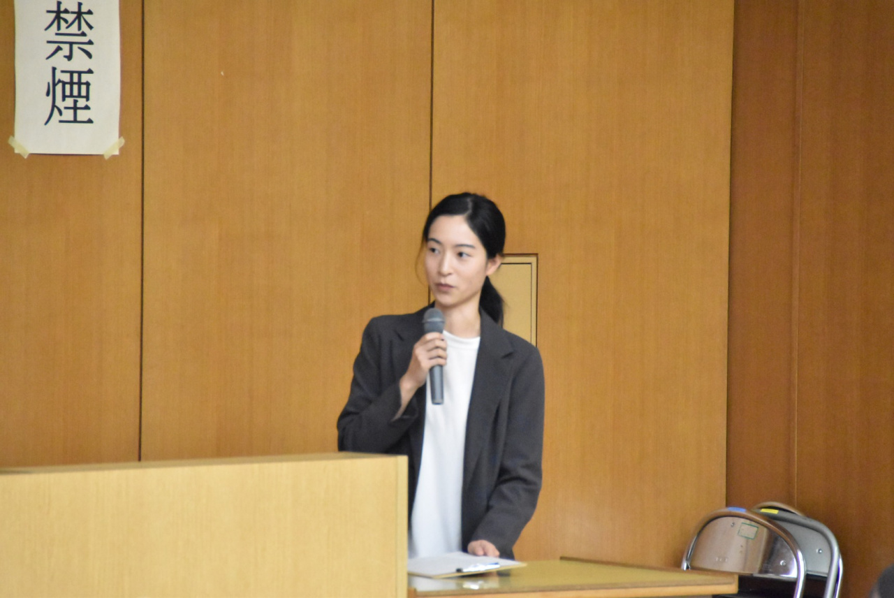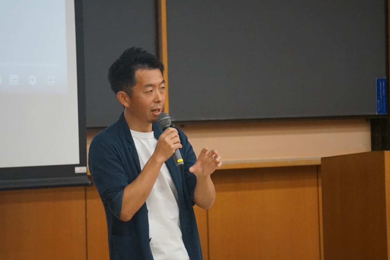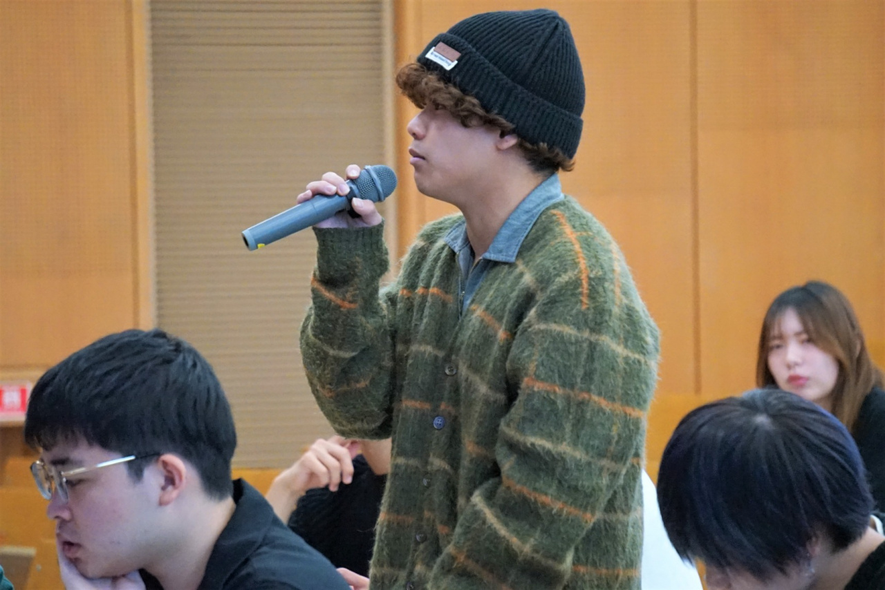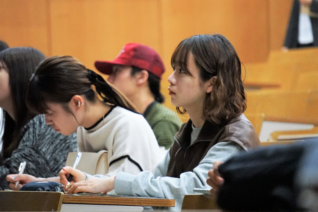 「アイデアソン」とは「アイデア」と「マラソン」を掛け合わせた造語です。今後、ファッションロスをテーマに経営学部眞鍋ゼミナール(以下、眞鍋ゼミ)が新たなビジネスアイデアを発案していきます。株式会社ヒューマンフォーラムから代表取締役社長 岩崎仁志氏を講師に迎え、ファッションロスの現状や課題、「RELEASE⇔CATCH(※2)」の取組について、今後のビジネスアイデアのヒントとなる情報提供をいただきました。参加者からはファッションロスの現状について、取り組みについての質問がなされるなど、熱心に聞き入っている様子でした。