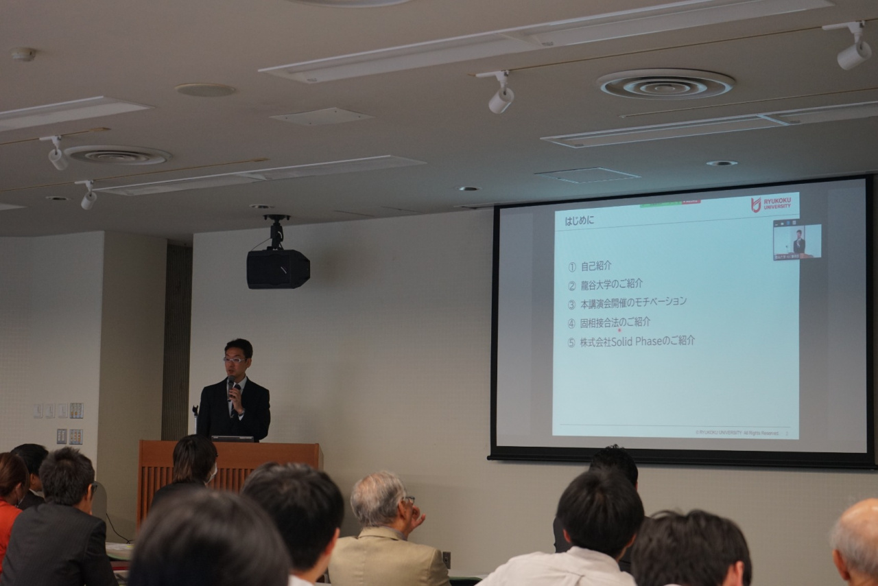 本講演では、共同研究事例の紹介、また、大阪大学と龍谷大学の研究成果を元に創業した株式会社Solid Phaseの事業内容も併せてご紹介いただきました。
