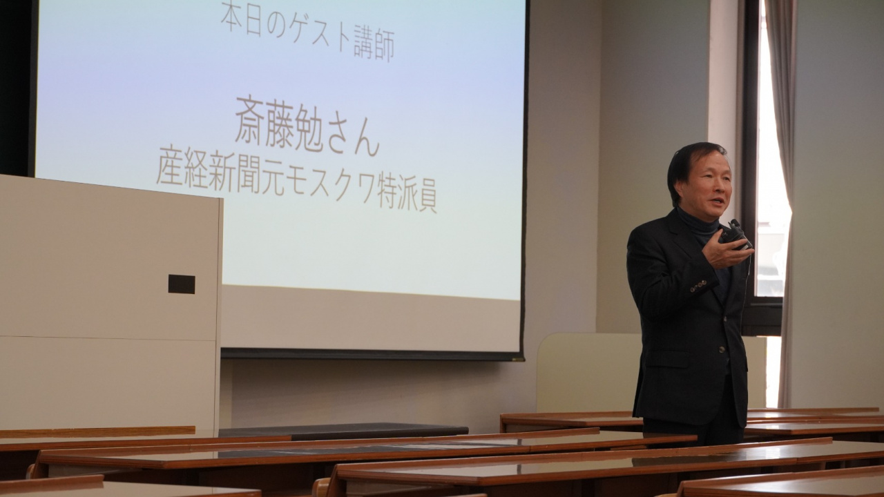 社会学部専攻科目「ジャーナリズム論Ⅱ」(担当:李相哲教授)において、斎藤 勉 氏(産経新聞論説委員)をお招きし、「ウクライナ戦争はどうなるのか 」をテーマに講演会を開催しました。