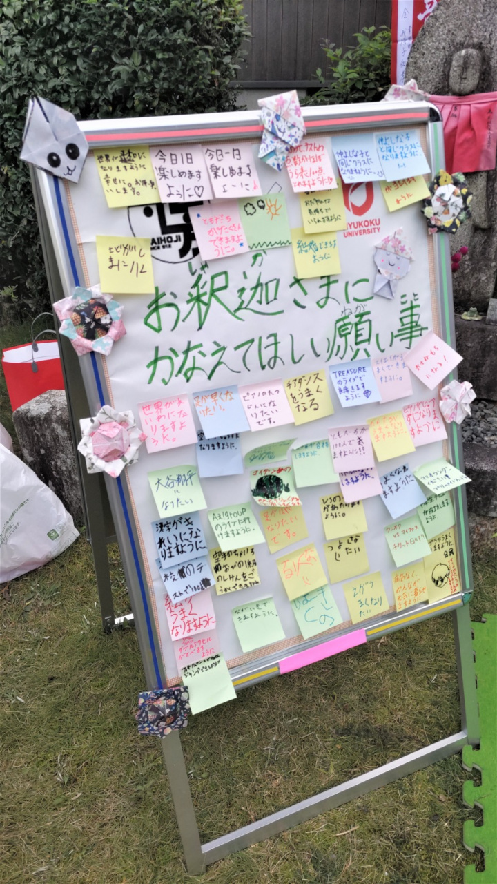 また、メッセージボードにそれぞれの人の願いを書いていただくことで、それぞれの思いを持ちながらお寺にやってくる一人ひとりの方との交流の機会を持つことができ、より、お寺にやってくる人びとの思いに近づくことができました。