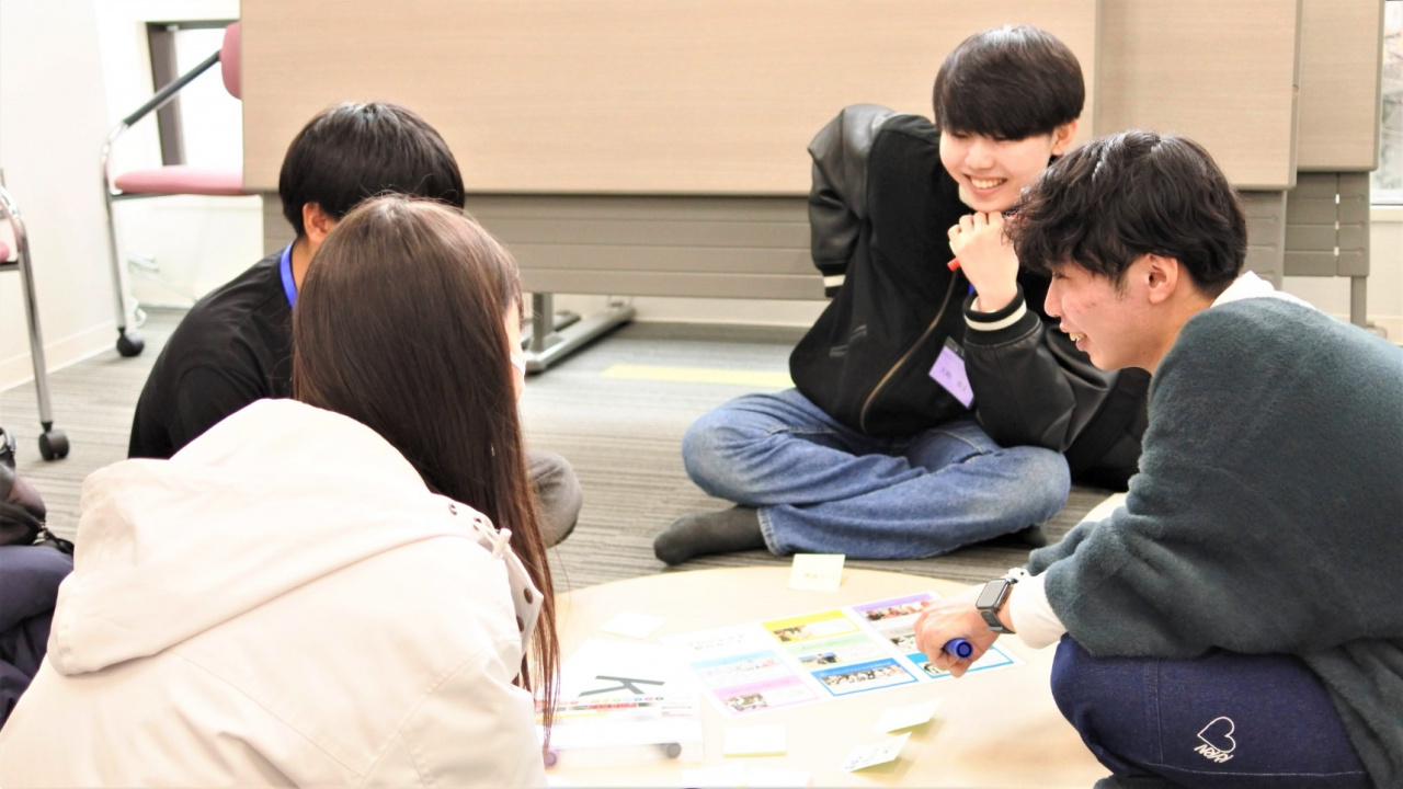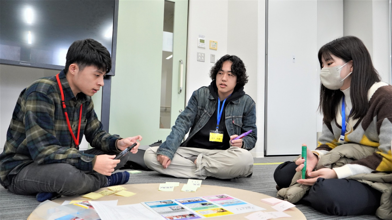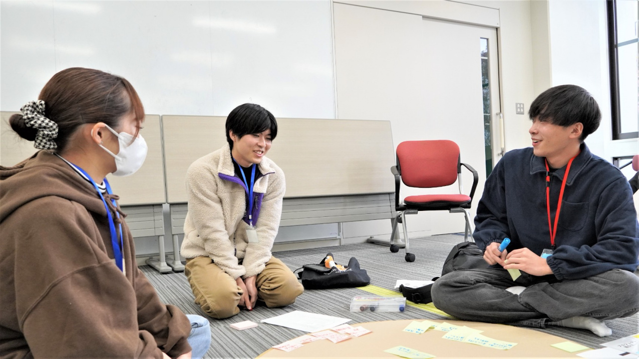 続いて、『所属するプロジェクトには、どのような「難しさ(困難)」があり、その「難しさ」を乗り越えるために、どのようにプロジェクトの仲間や地域の皆さんと「知恵」を出し合い、「工夫」をしましたか。乗り越えることで、自分にどのような「成長」や「変化」がありましたか。』『他のプロジェクトの経験のどのようなところに、共感したり、感心したりしましたか。』といったテーマで各プロジェクトの課題や、自分自身の展望を共有する時間が設けられました。