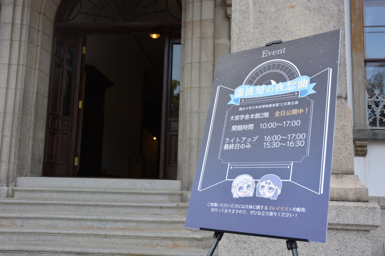 11月29日より龍谷ミュージアムにて始まりました。また、大宮学舎本館イベントとして、天体に関する曲の再生・紹介や天体にまつわる小話をパネルで展示する「誰彼刻の夜想曲」も開催しております。