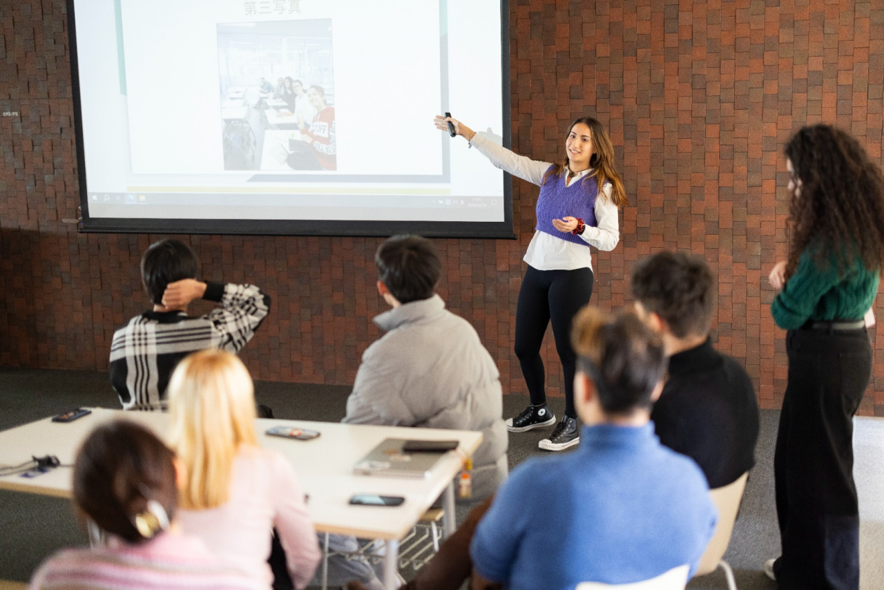 2限目は、プレゼンテーションを行いました。発表の順番はランダムで、何人かの日本人学生が観に来てくれ、最後にはフィードバックをもらいました。私たちR-STEPの生徒は初め緊張していましたが、他の人たちは私たちの言語能力を判断するためにいるわけではないので、あまり心配する必要はありませんでした。この留学中にお気に入りになった観光地や、他の人々の生活についてプレゼンを聞くのは楽しかったです。