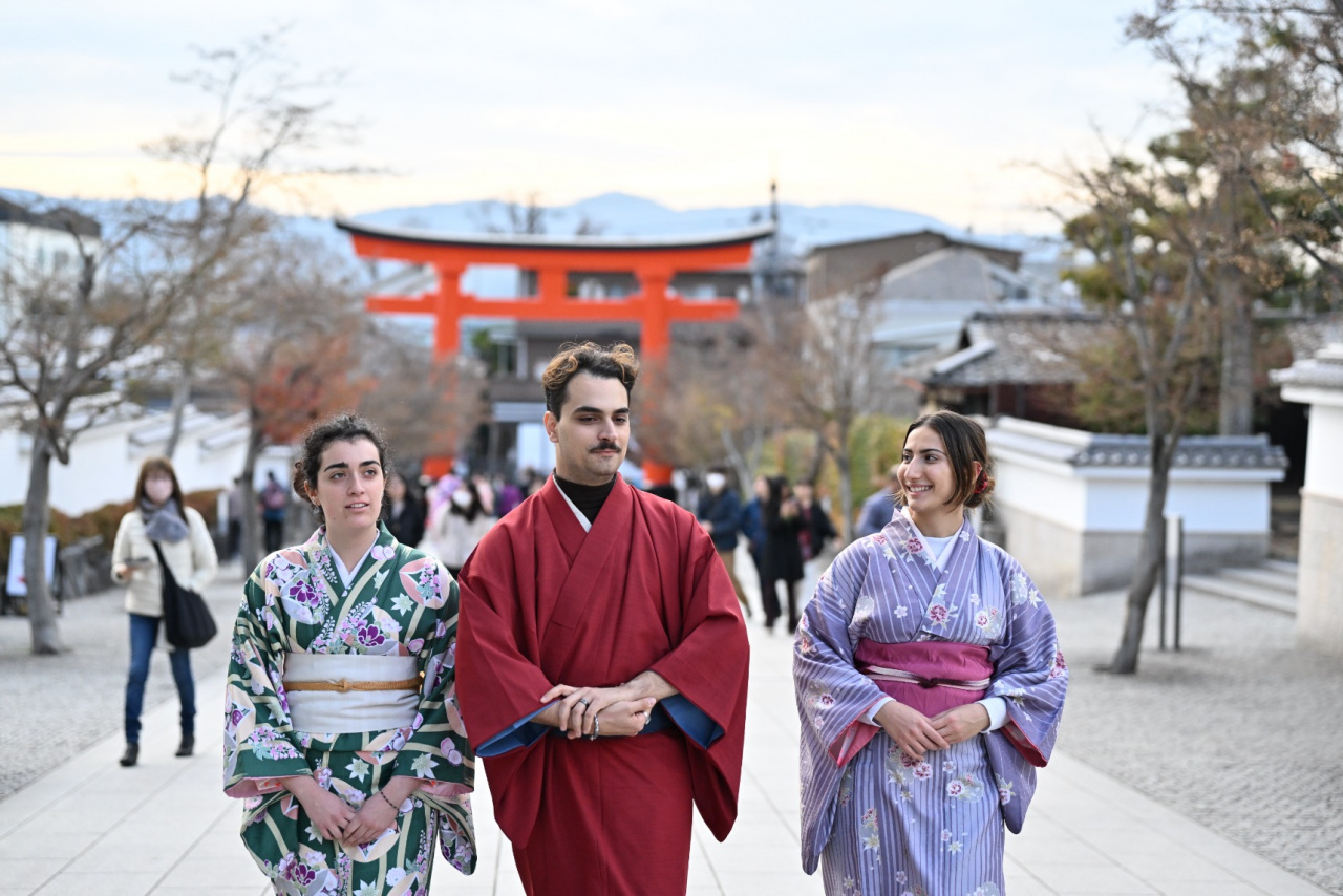 その後、和装のまま伏見稲荷大社に行きました。そこでは、和装が神社の雰囲気に合っているため、たくさん写真を撮りました。少し山を登りましたが、池に着いたところで引き返す時間となり大学に戻りました。この2週間、私たちを色々な素晴らしい場所に案内してくれたガイドに別れを告げる時間でした。