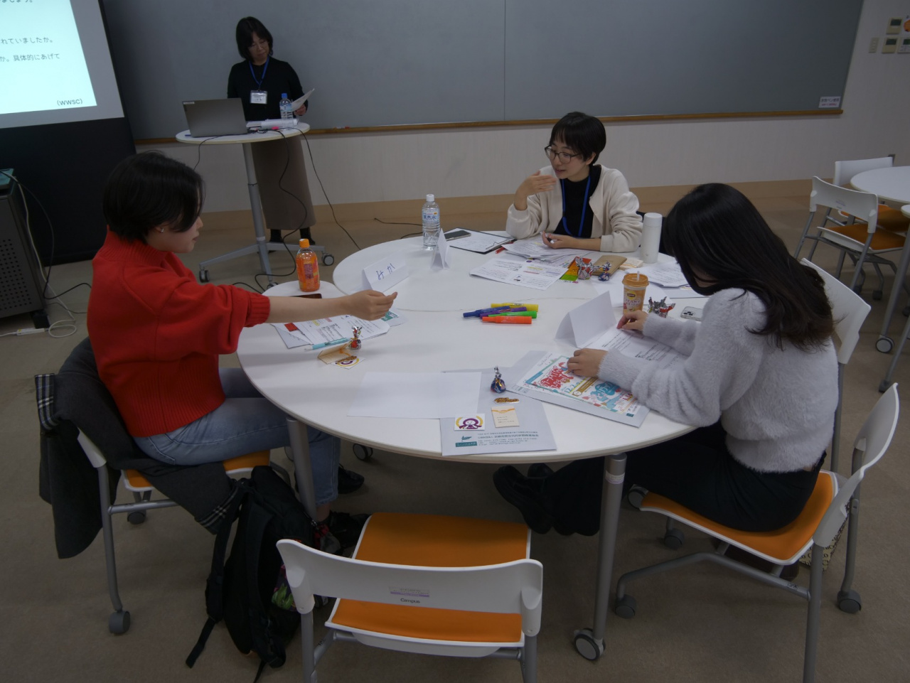 山本 潤さん(茨城県立大学助教)、奥出智行さん(精神保健福祉士・公認心理師)の説明と、公益財団法人京都市男女共同参画推進協会の職員の方のファシリテーションで、リラックスした空気でワークショップに参加でき、学ぶことができました。