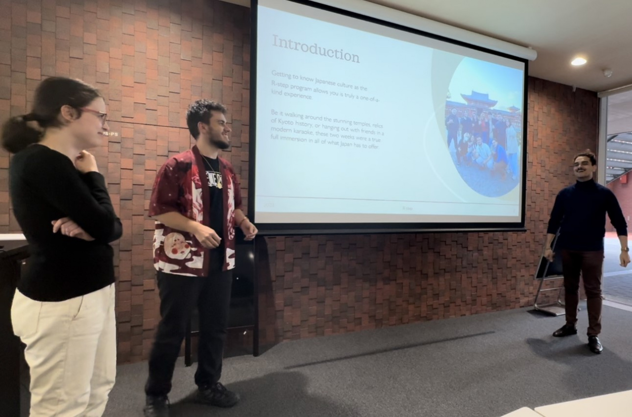 2023年12月5日(火)から15日(金)まで、海外協定校の学生を対象に、短期留学プログラム「R-STEP(Ryukoku Short-Term Experience Program)」を開催しています。今回は3ヶ国から10名の学生が参加。12月15日(金)プログラム10日目は、午前中に「Japanese Religions」、「JapaneseMedia & Arts」の講義を受けた後、午後は英語でのR-STEP最終プレゼンを行いました。