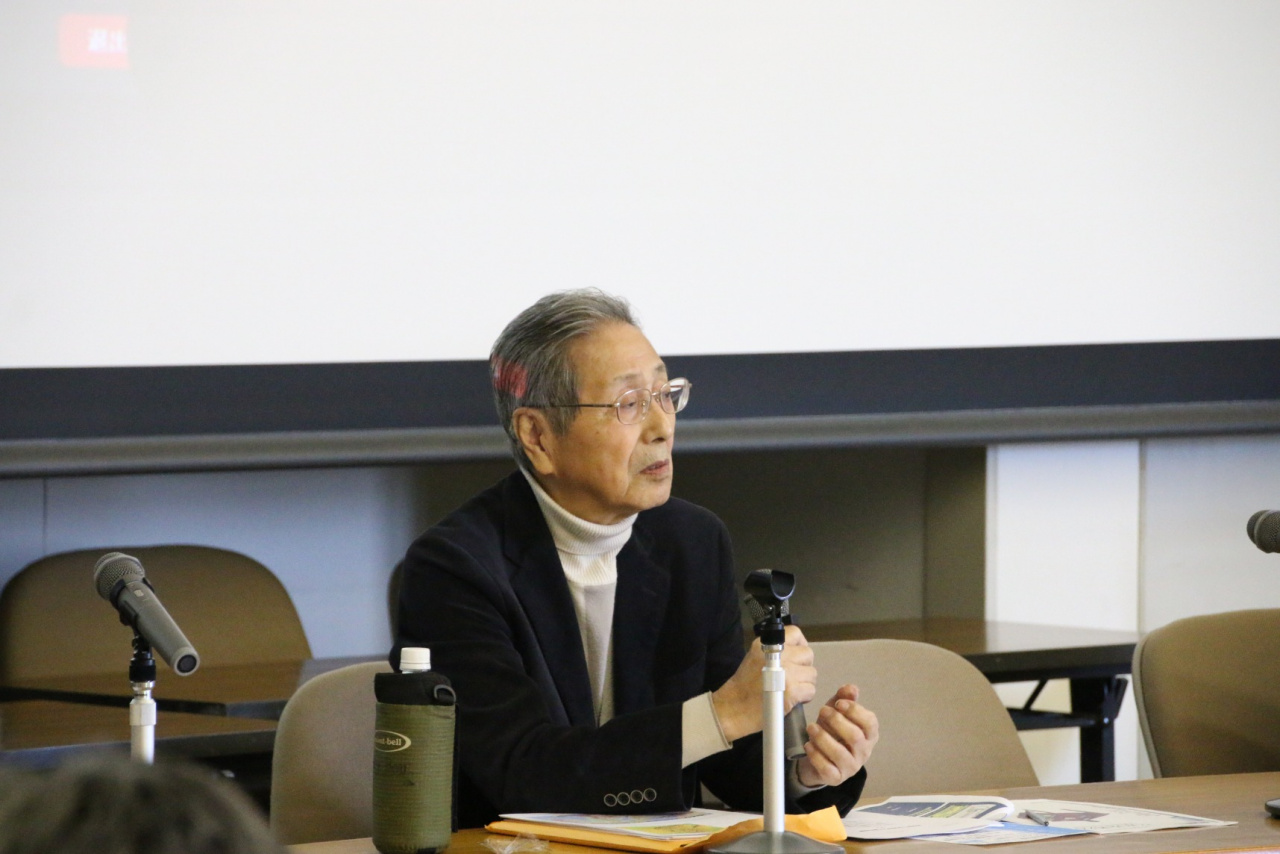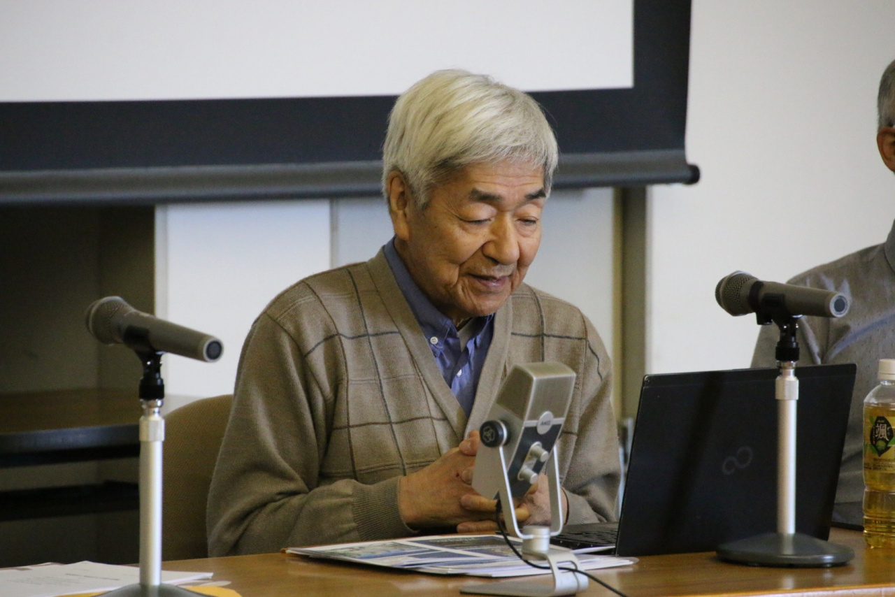 今本博健氏は、「国交省近畿地整・滋賀県・京都府・大阪府による大戸川ダム計画復活の論拠を突く」のテーマで報告されました。大戸川ダム事業の経緯においてキーポイントとなった事柄について解説されるとともに、国が説明する淀川水系の治水についての基本的な考え方や河川整備計画における問題点の指摘がありました。また、大戸川ダムの治水有効性について河川管理者が計画時に提示したデータをもとに、その説明のどの点にどういう問題があるのかを具体的に説かれました。また、2013年台風18号豪雨時に緊急放流を行った天ヶ瀬ダムの運用についても、実際の水文データをもとに言及されました。