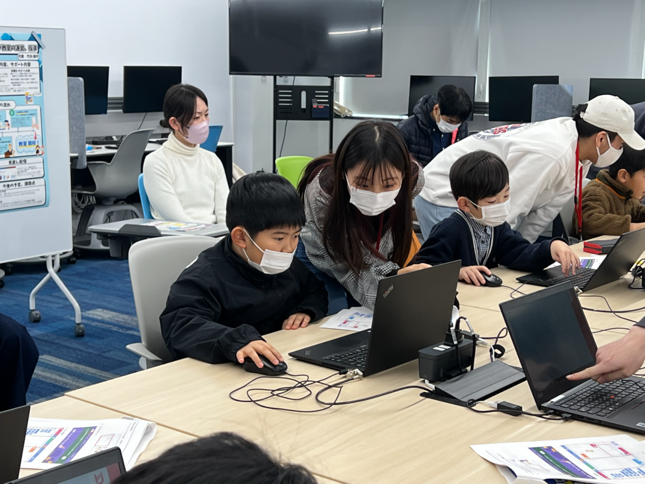 12月26日(火)と27日(水)、知能情報メディア課程 3年の 竹内 槙作 さんら学生が講師となり、瀬田キャンパス1号館612実習室において小中学生向けにプログラミング講座を開講しました。