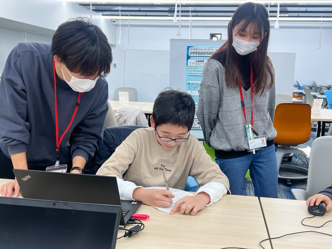 これは、竹内さんが2023年度のR-Gap期間における「プロジェクトリサーチ」の活動(企画名:「小中学生向けオンラインプログラミング教室の運営、指導」)の一環で開講したものです。