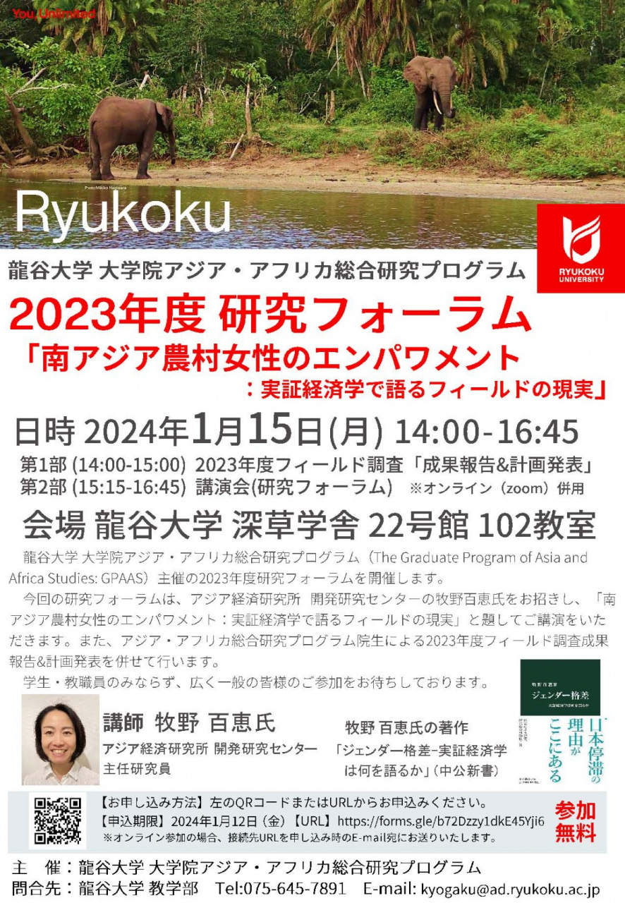 2023年度 研究フォーラムのご案内(2024年1月15日(月)開催)【龍谷大学 大学院アジア・アフリカ総合研究プログラム】