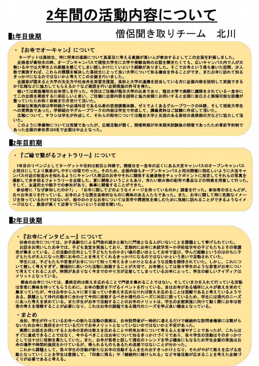 ・学生のみなさんの取り組みがよくわかりました。特に、どんなところが大変だったか、やりがいがあったかを語ってくれた学生さんのコメントは、実習に取り組む意味が伝わってきました。