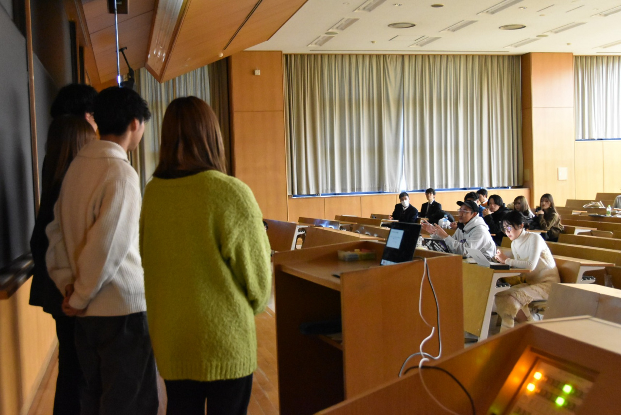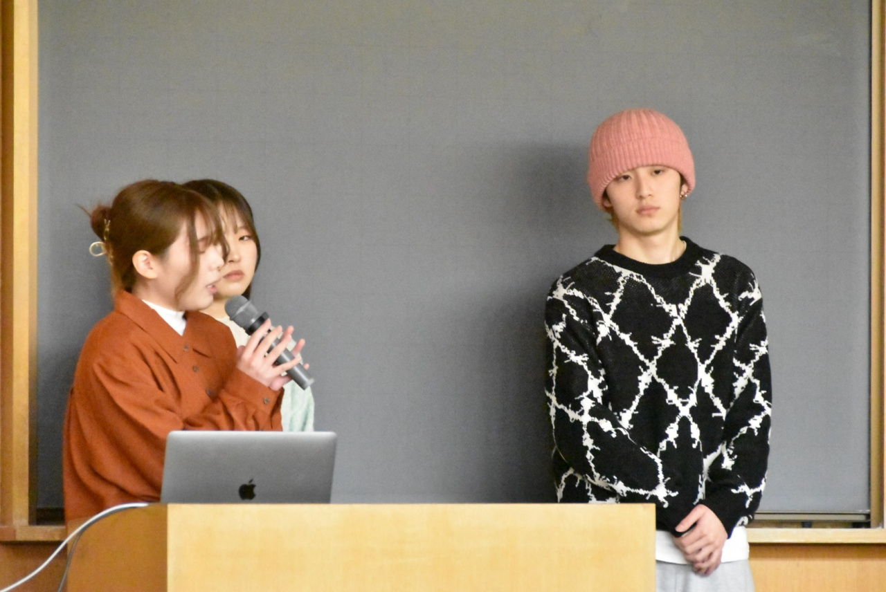 当日の発表では、学内で服を譲渡したい人から衣服を募り、それ元手にレンタルするサービスから、衣服の回収をし、売れそうな衣服は業者に販売を委託し、売れなさそうな服については、リメイクをして新たな商品が提供できるのでは、といった学生ならではの発想で考えられた発表が力強くなされていました。