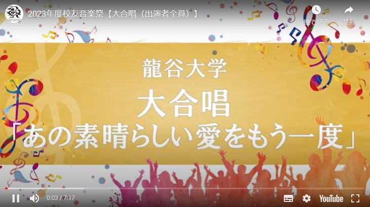 2023年11月26日(日)に龍谷大学響都ホール校友会館で開催された 「2022年度 校友音楽祭」をオンデマンド配信いたします。