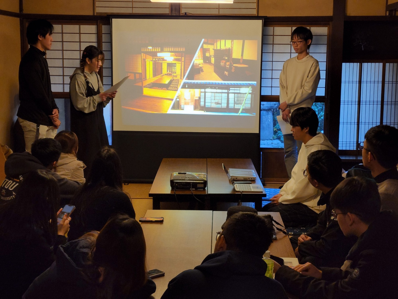 訪問団は、来訪初日に歴史的建築物である「深草・町家キャンパス」を見学し、同キャンパスを拠点に活動する「京まちや七彩コミュニティ」の学生と交流しました。双方の学生が活動を紹介し、言語や文化の違いはあるにせよ、地域との交流について共通する課題があるなど、新たな気付きを得る機会になりました。