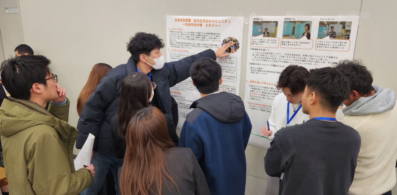 2日目、訪問団は瀬田キャンパスを訪れました。午前は、社会学部「社会共生実習」活動報告会に参加し、特にポスターセッションにおいては、通訳を介して本学学生の取り組みに対し熱心に質問するなど交流を深めました。