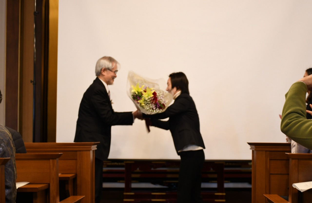 最後に花束贈呈と記念撮影をおこなって、最終講義は幕を閉じました。