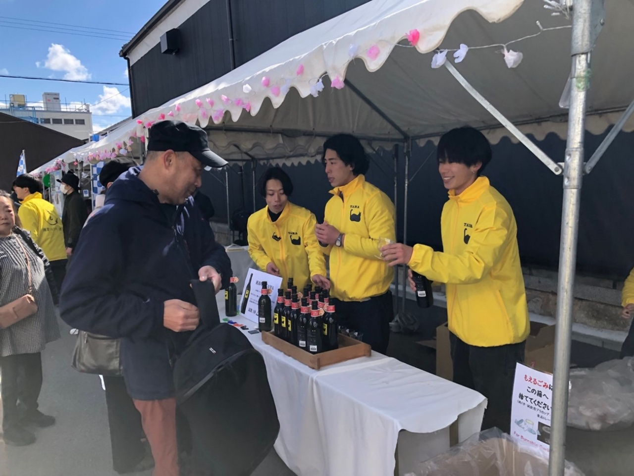 この度、蔵開きの開催にあたり、飲食ブースの企画運営という大変光栄なお誘いをいただいた玉乃光酒造様には本当に感謝しています。イベントの準備や計画立案は大変な労力を要しましたが、約2000人以上のお客様が来場され、大いに盛り上がったことは大変嬉しく思います。何よりも、高校生や大学生総勢56名の運営スタッフが一丸となり活動し、地域復興・産学連携の思いを込めたこのイベントの成功に大いに貢献してくれました。そして眞鍋ゼミとして出店した各ブースでは完売・大盛況と本当に喜ばしい結果となり参加してくれた学生達の尽力だと思います。貴重な経験を本当にありがとうございました!今後も眞鍋ゼミの活動に乞いご期待下さい!