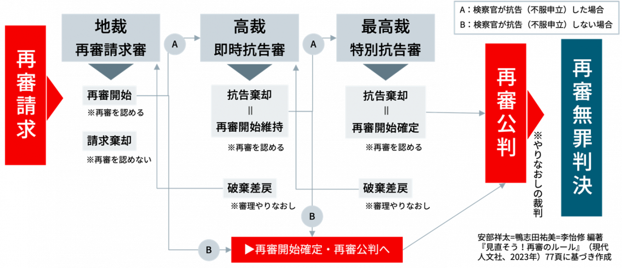 4.※再審請求〜再審公判〜再審無罪判決までの一般的な流れ(概略図)