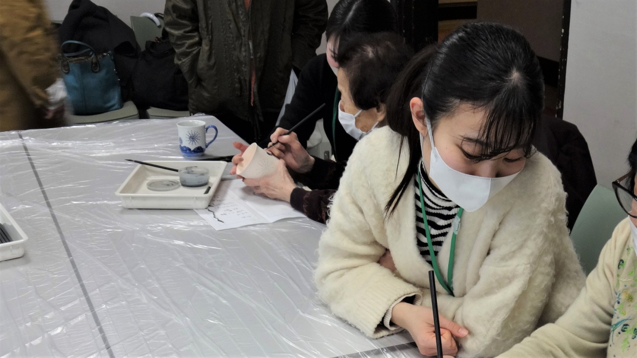 ここでは参加者のみなさんがマグカップに思い思いの絵や好きな言葉などを描いて、世界に一つだけのマグカップを作りました。