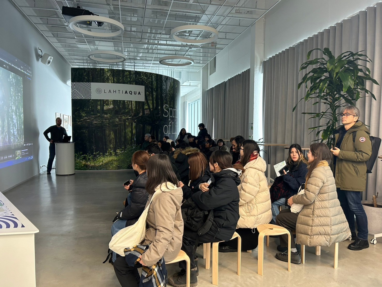 その後は、地下水の配給や水質管理と排水リサイクル事業を統合的に展開しているLahti Aquaを訪問し、講義を受けました。