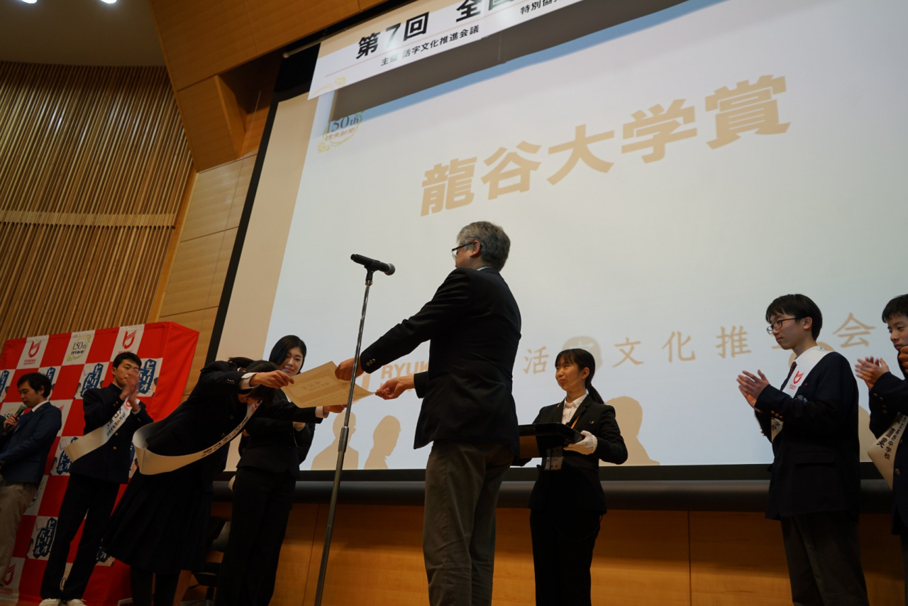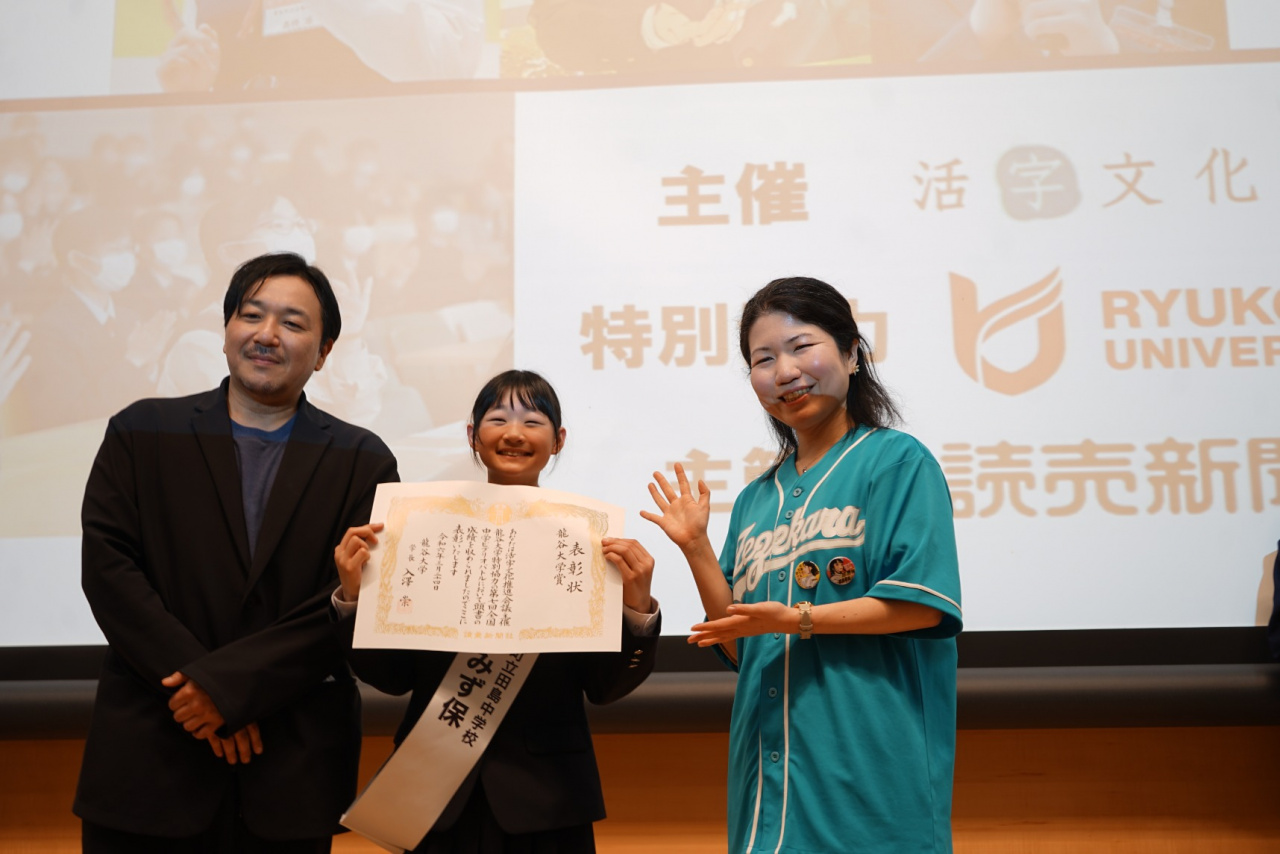 また、龍谷大学賞は、福島県南会津町立田島中学校の細井みず保さんが「アリス殺し」を紹介し、安藤副学長から賞状と記念品を授与しました。
