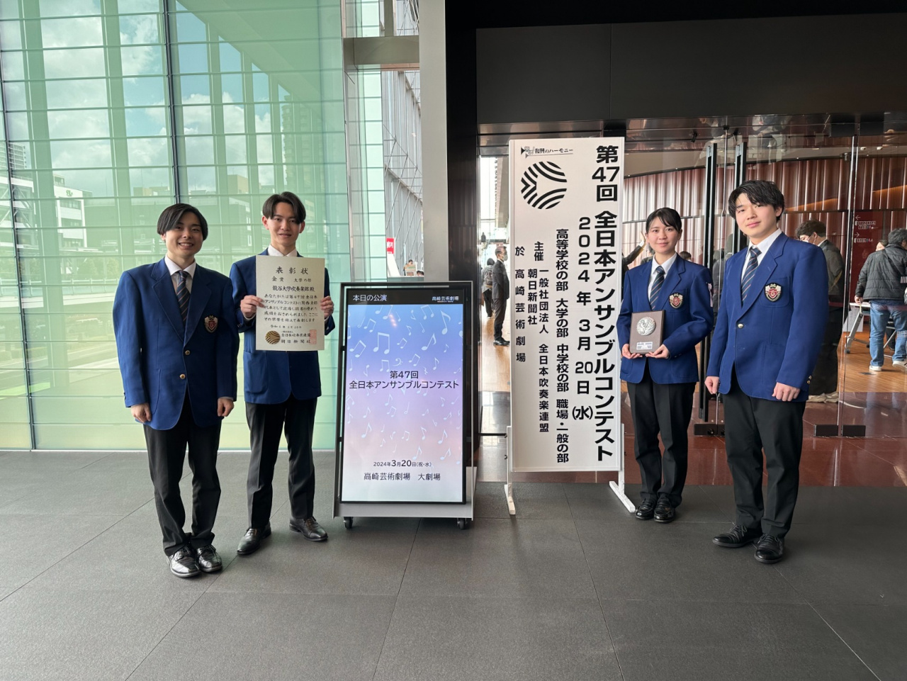 2024年3月20日(水・祝)、高崎芸術劇場にて開催された第47回全日本アンサンブルコンテスト(全日本吹奏楽連盟、朝日新聞社主催)において、関西代表として出場したサクソフォン四重奏が金賞を受賞しました。