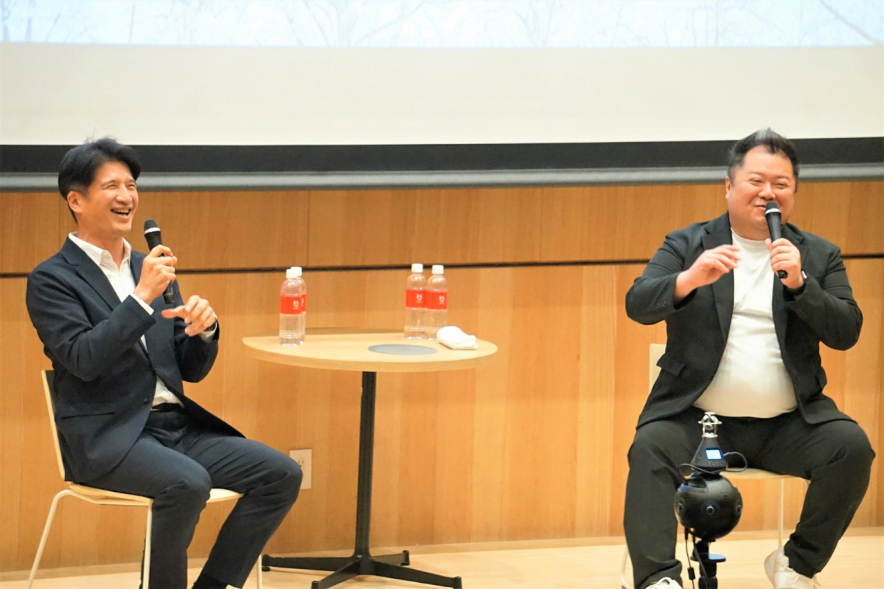 株式会社アミューズ代表取締役社長 中西氏(文学部卒)と親友のブラックマヨネーズ 小杉氏による新入生歓迎トークイベントを開催【学生部】
