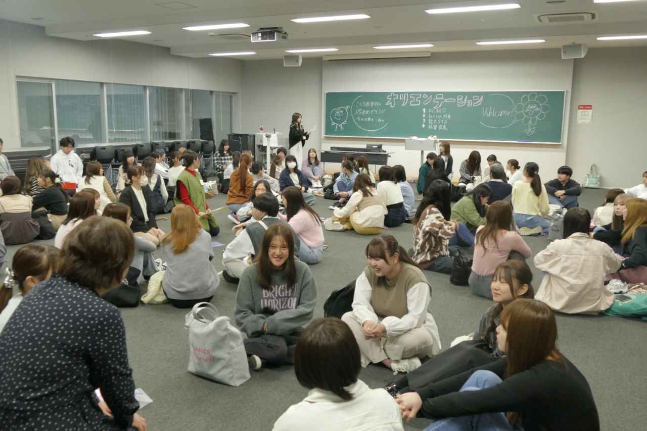 新入生交流会では、社会福祉学科は学科全体で、こども教育学科はクラス別で、2年生のサポートに導かれて、学びの仲間と和やかなひとときを持つことが出来ました。