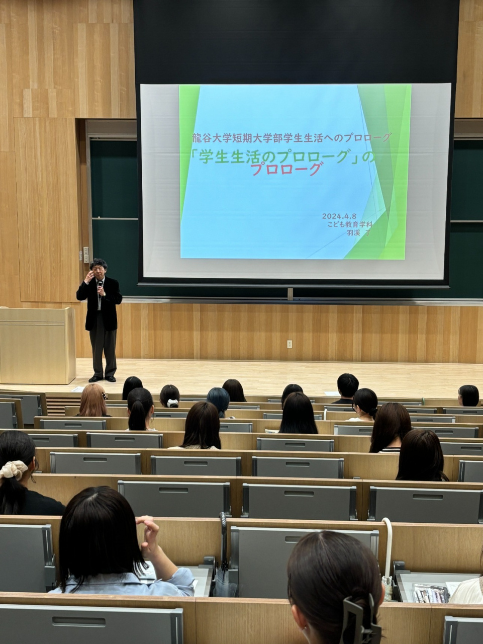 4月1日(月)晴れやかに入学した短期大学部社会福祉学科・こども教育学科の新入学生は、数日間の各種オリエンテーションに臨みました。4月8日(月)には、学外講師および学部教員による講演「学生生活へのプロローグ 京都で学生生活をおくる~その一つの視点~」が催されました。