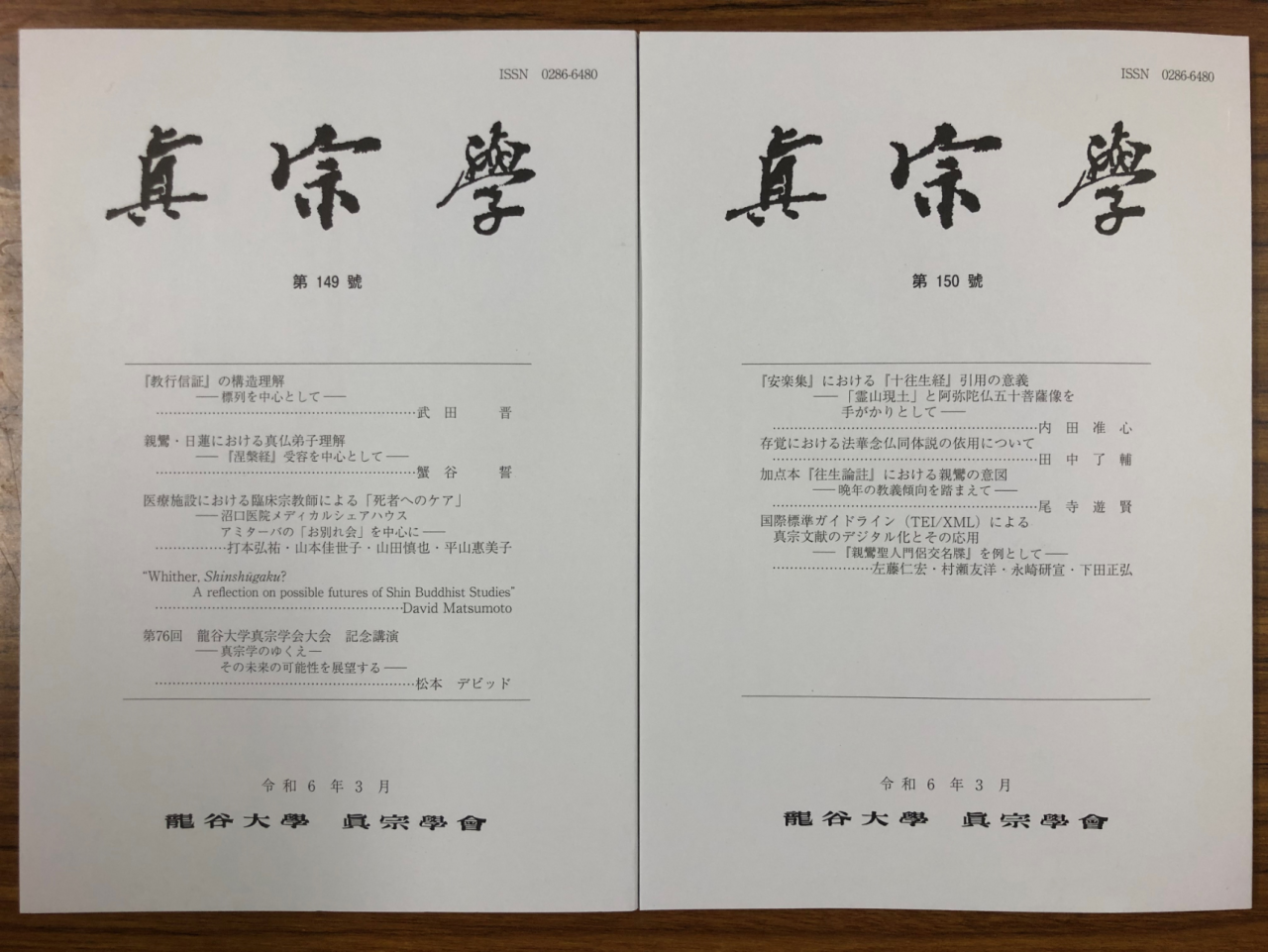 龍谷大学真宗学会は2024年3月14日に、『真宗学』149号、150号を刊行いたしました。