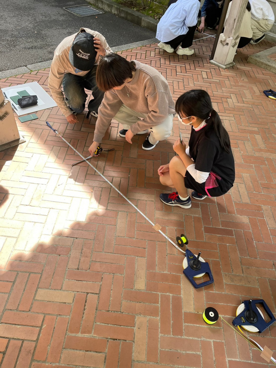 4月17日・24日の授業では、「遺構実測」の方法を学び、体験しました。