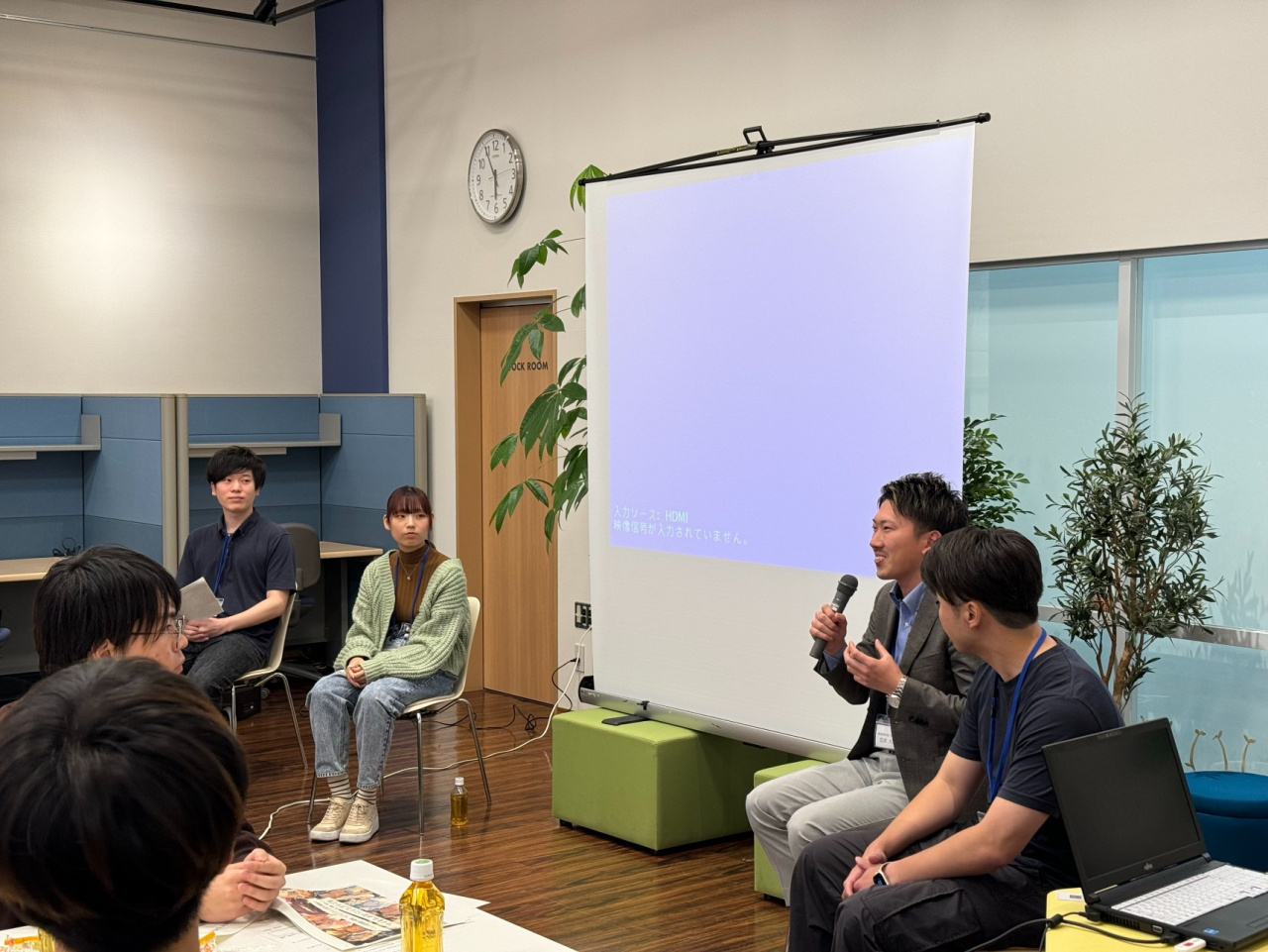 先輩として登場したのは、金融事業を展開する立命館大学経済学部4年の古高雅也さん、発達障害児者支援アプリ開発を事業とする立命館大学産業社会学部3年の森本陽加里さん、ジビエブラントを運営する龍谷大学政策学部卒業生の笠井大輝さん、VR・映像制作を行う龍谷大学文学部卒業生の深海綾太さんの4人。