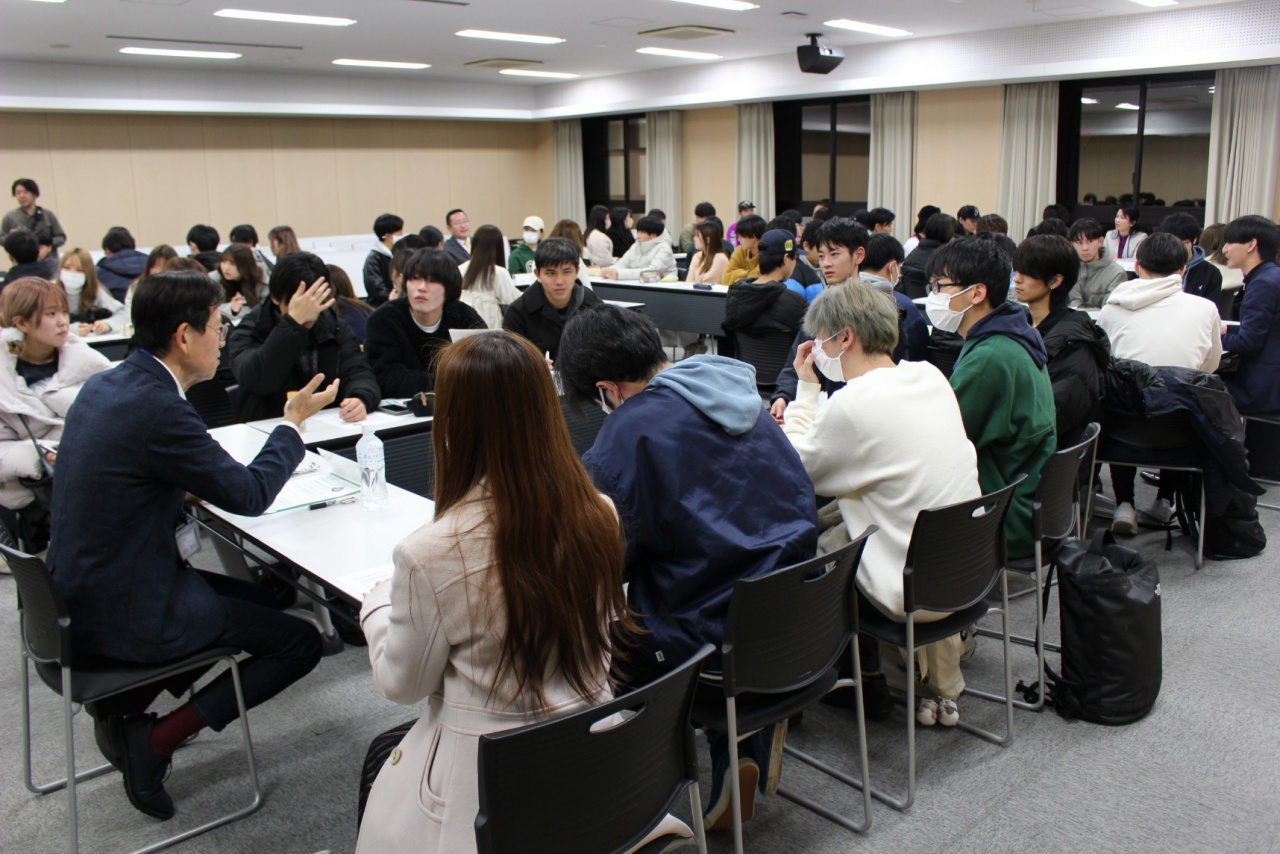 法学部では独自のメンターシッププログラムを行っております。メンターシッププログラムとは、龍谷大学卒業生が「メンター(アドバイザー)」となって、法学部生・研究生である「メンティー」に、社会人として培ってきたキャリアや学生時代の経験を活かしながら、進路選択や学生生活に関するアドバイスを行い、「キャリア形成を考えるきっかけ」を提供することを目的とした、法学部独自のプログラムです。