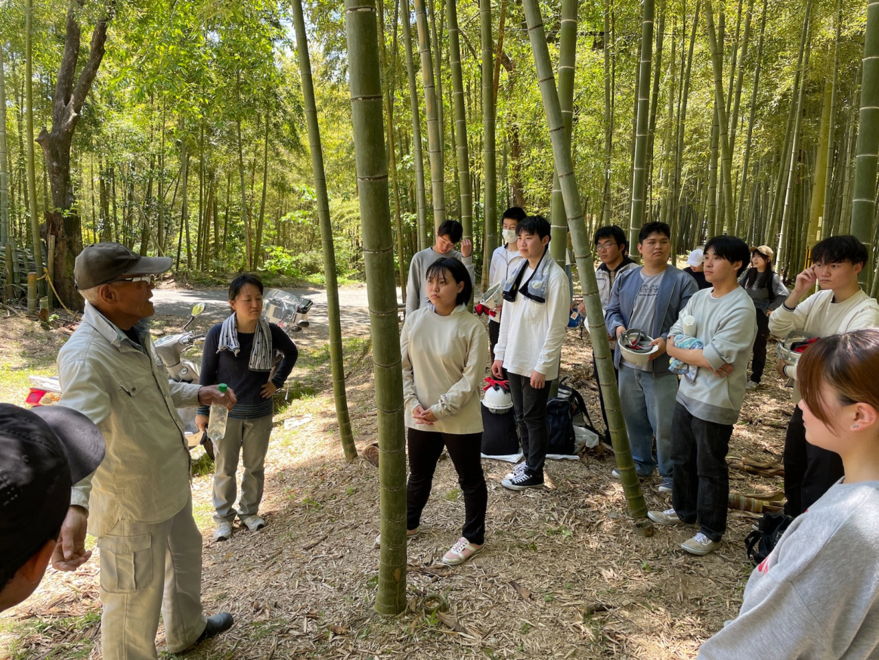 今回のフィールドワークを通して、竹林管理の大変さを実感し、放置竹林問題の現状を体験することができました。また杉井さんをはじめとした深草地域の方々とのコミュニケーションや、作業におけるチームワークなども現場で学ぶことができました。事前学習で知識として学んでいた放置竹林問題について、現場で自分の感覚を働かせることが、その現状をより深く捉えるきっかけになったのではないでしょうか。
