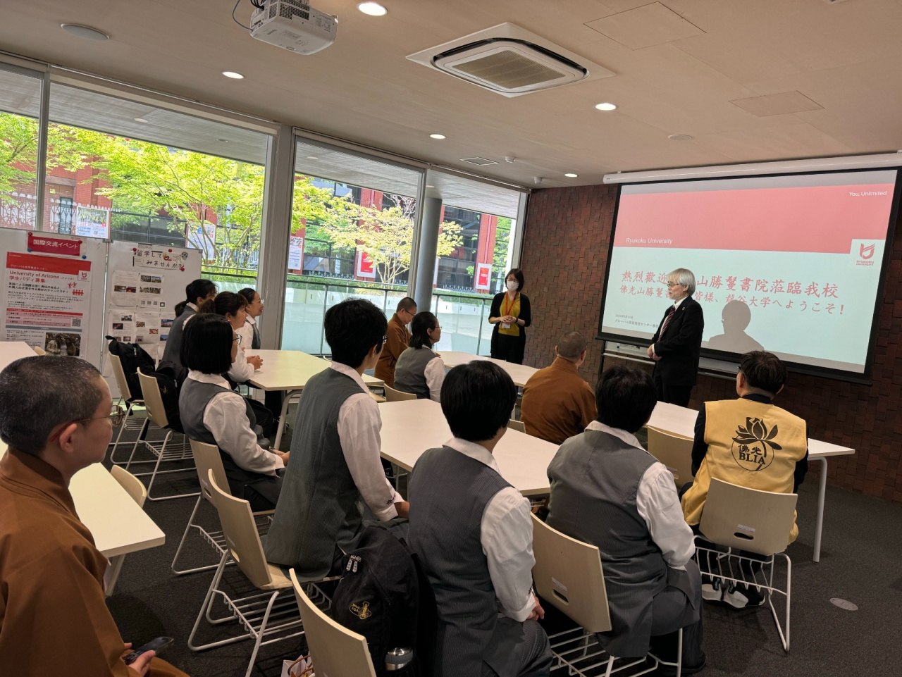 2024.05.14 台湾佛光山勝鬘書院が本学学長を表敬訪問【R-Globe】 2024年5月14日(火)、台湾佛光山勝鬘書院の方々が、龍谷大学の入澤崇学長を表敬訪問されました。佛光山勝鬘書院で仏教を学んでいる生徒を含め8名は深草キャンパスを見学した後、龍谷ミュージアムの春季特別展を見学されました。