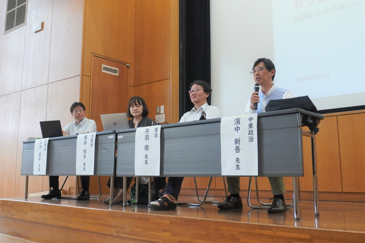 5月22日(水)に、 1年生対象科目「基礎演習」において「国際紛争における力の論理と人権規範の相克:ガザ紛争を事例として」をテーマにシンポジウムを開催しました。