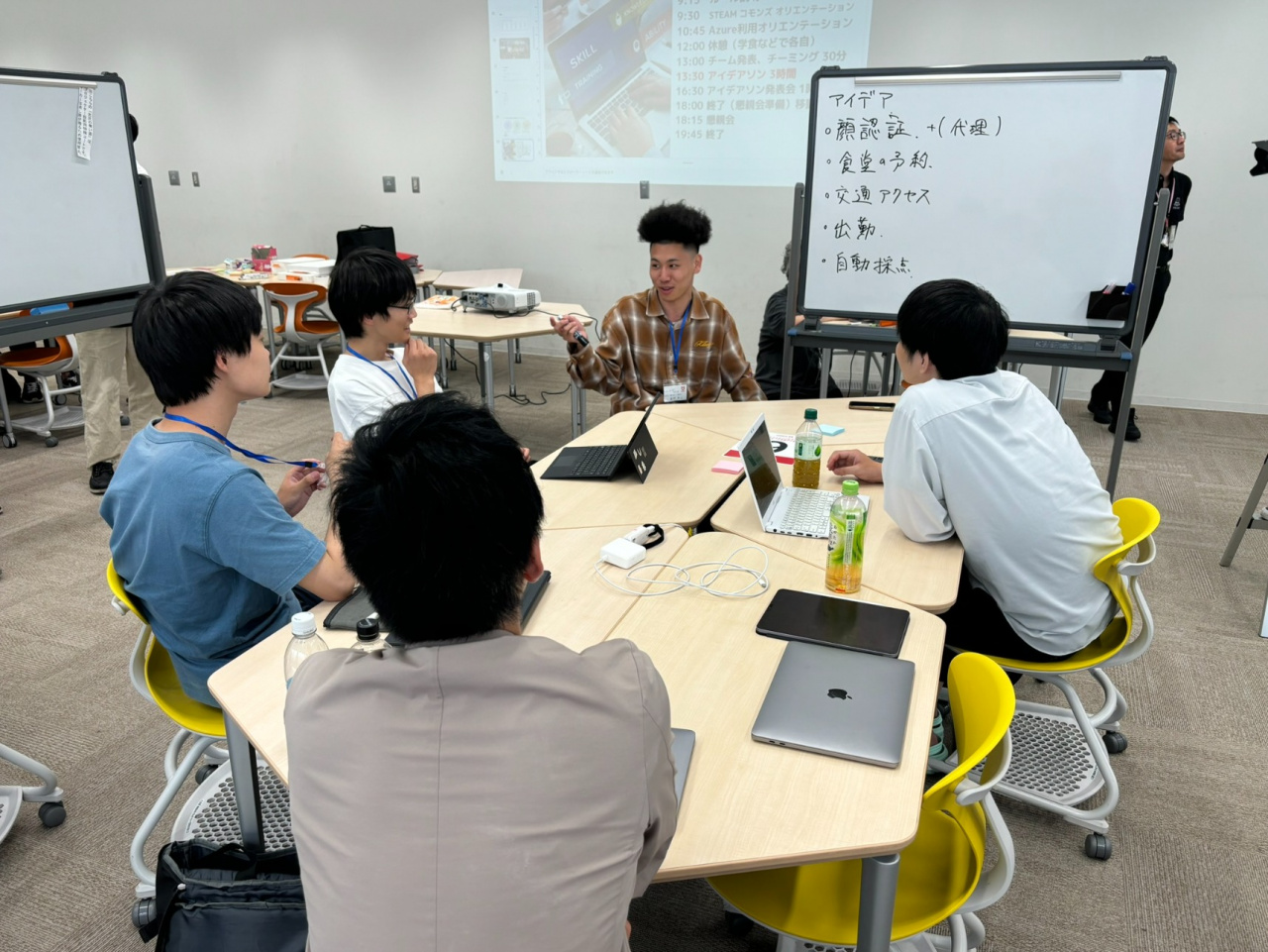 午前中は、ソフトバンクの担当者から「スマートキャンパス ハッカソンについて」「アイデアソンについて」「Azureの使用方法について」など、本学の担当者から「STEAMコモンズについて」など、ハッカソンを行うためのオリエンテーションが行われました。