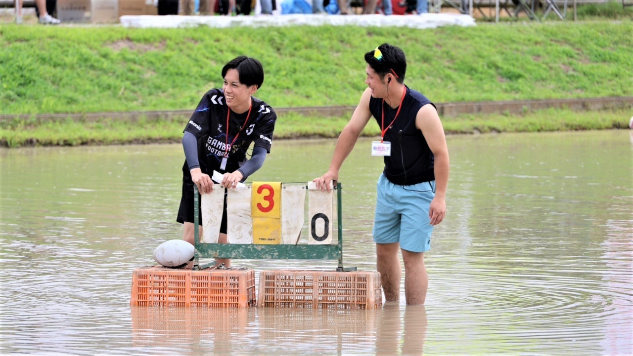 今回の「向島田んぼラグビー」への参画を通じて、学生たちは多くのことを学びました。クイズや大会運営サポートでも改善できる点はありますが、自分たちでアイデアをだして準備し実行した企画は代え難い経験です。