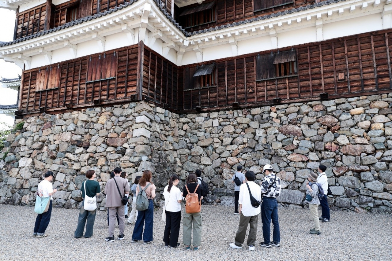 発足から2年目となる福知山プロジェクトは昨年度に引き続き、福知山市中六人部地域と連携した山の自然資源を活かした地域活性化に取り組みます。今回のフィールドワークの初日は学生と地域の皆さんとの顔合わせの後、地域の活動紹介を受けました。お昼を挟んで、地域の方々のガイドで地域を歩きました。2日目は、谷垣先生によるガイドのもと福知山市街を散策し、明智光秀が築いた城下町の変遷、水害・治水の歴史などを学びました。