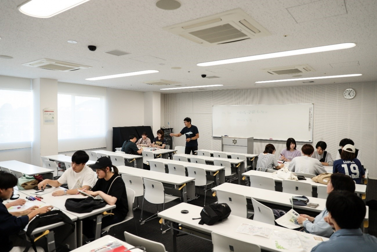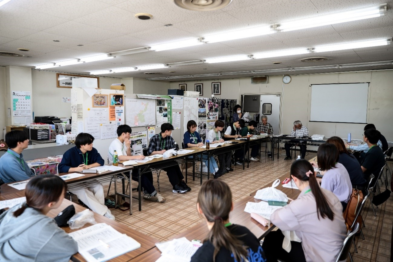 快晴の下、学生たちは地域の皆さんや谷垣先生の説明を熱心に聞き、事前に配布された野帳(フィールドノート)にメモする姿が印象的でした。事前学習では得られることの無かった、現地の情報を収集することができ、学生にとって刺激的かつ実りある時間になりました。