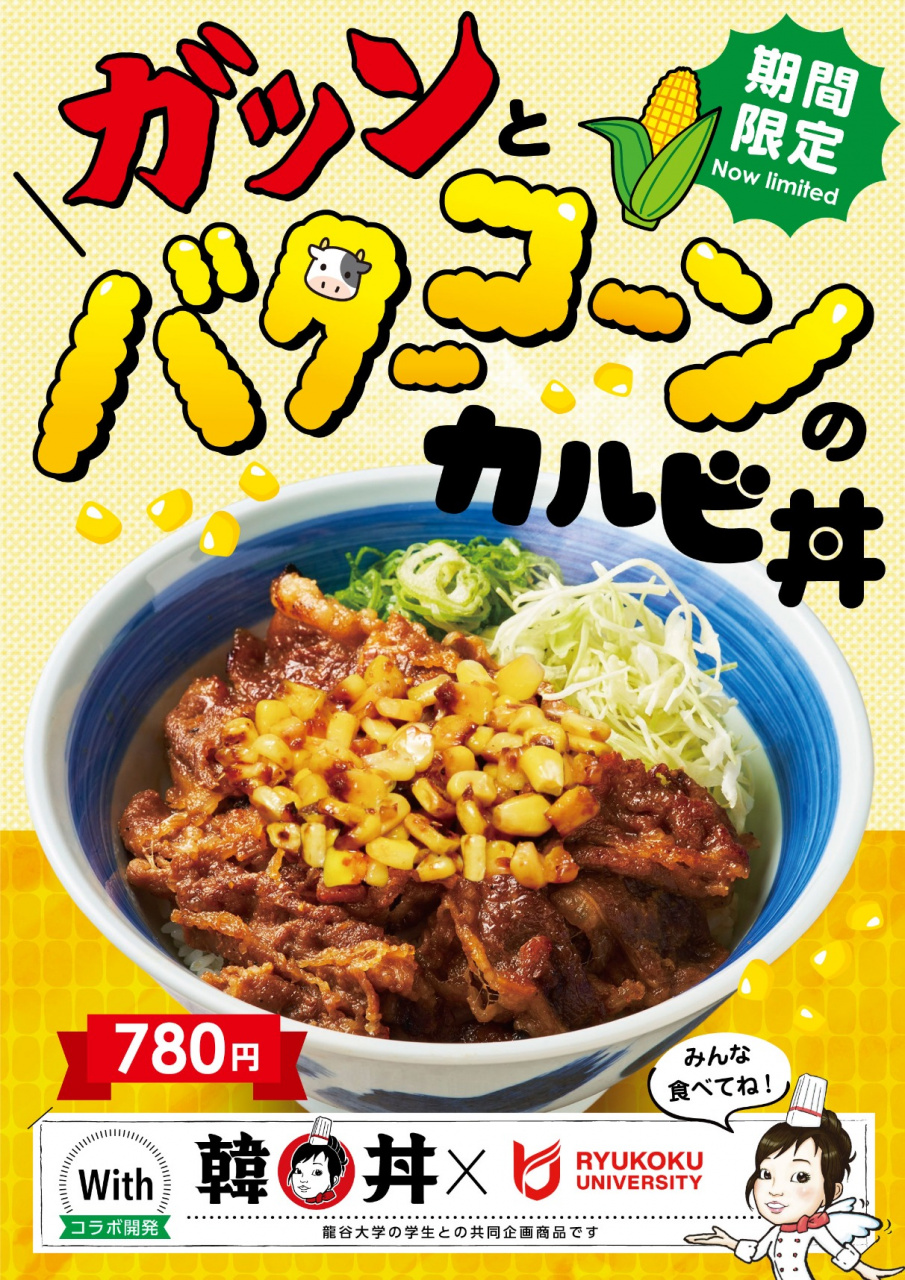 (株)やる気グループ×龍谷大学 商品開発プロジェクト 経営学部生が「韓丼」ブランドへ「ガツンとバターコーンのカルビ丼」を提案・発売<6/26(水)~7/7(日)の期間限定で、「韓丼」新堀川本店にて販売>【REC】